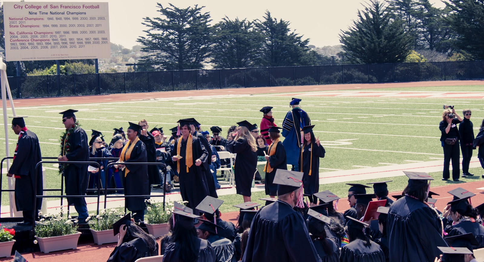 毕业生进场,唱美国国歌,student speaker致词,上台领取文凭,拍照,最后再把四方帽的流苏从右边移到左边,之后两个小时的典礼就结束啦